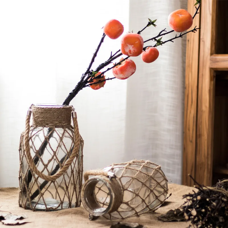 American Style Hemp Rope Vase Handmade Glass Vase Living Rooms Table Decoration Water Hydroponics F