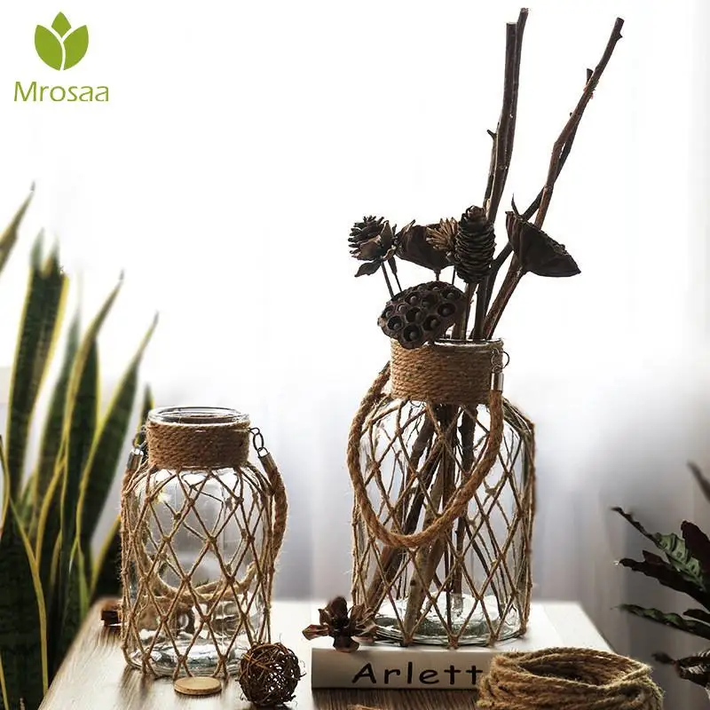 HOT Sale American Style Hemp Rope Vase Handmade Glass Vase Living Rooms Table Decoration Water Hydroponics F